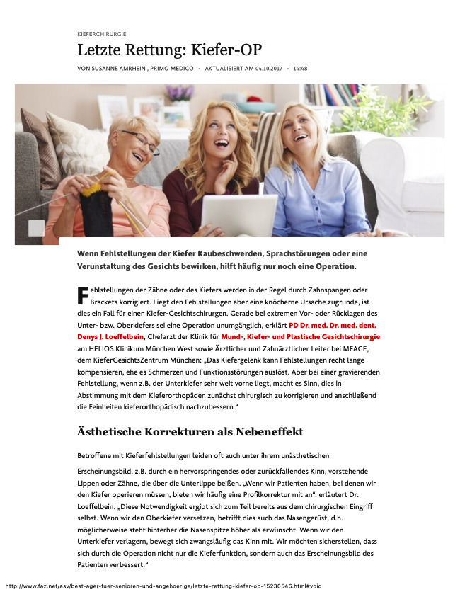 In einem Artikel auf FAZ online berichtet mit PD Dr. Dr. Denys Loeffelbein über die Behandlungsmöglichkeiten bei gravierenden Zahn- und Kieferfehlstellungen.