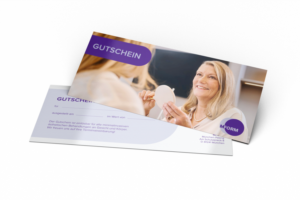 You can use this voucher in the amount of your choice for all minimally invasive aesthetic treatments on the face and body without a scalpel, e.g. for wrinkle treatment with hyaluronic acid, nanofat, etc.