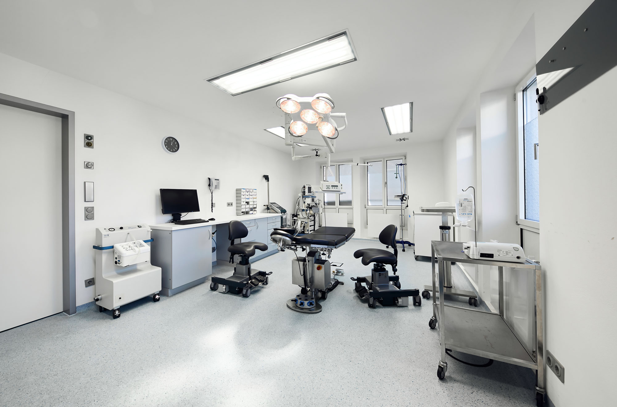 Der Erfolg einer chirurgischen Behandlung hängt nicht nur von der Erfahrung und der Sorgfalt des Operateurs ab, sondern wird auch durch optimale Rahmenbedingungen wie Hygiene und Sterilität bestimmt. Zur Sicherheit unserer Patienten führen wir deshalb alle Operationen nicht in Behandlungszimmern oder Eingriffsräumen sondern in unserer integrierten Klinik in zwei hoch modernen OP-Räumen der Klasse I durch.