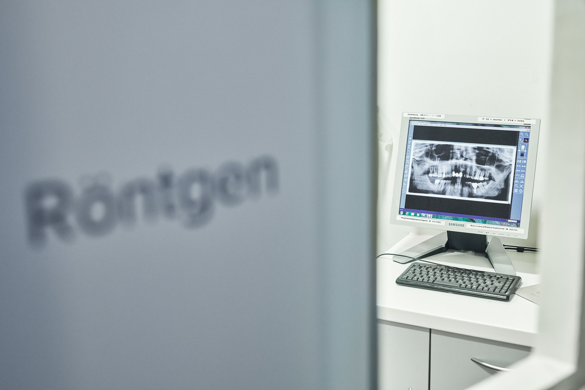 Ihre Sicherheit und Gesundheit stehen für uns an erster Stelle. Unser modernes Röntgen- und Computersystem ermöglicht es uns, die aufgenommenen Röntgenbilder sofort am Monitor darzustellen und zu bearbeiten. Das hohe Auflösungsvermögen und die Möglichkeit, die digitalisierten Bilder nachträglich bearbeiten zu können, gewährleistet eine genaue und sichere Diagnose und gibt uns und Ihnen die Möglichkeit, anhand der Darstellung am Monitor gemeinsam eine exakte Behandlungsplanung zu erarbeiten.